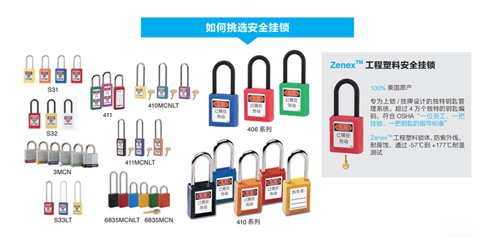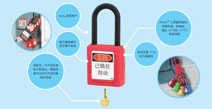 電源開關、氣源開關、管道閥門開關、非作業人員不能靠近等,這些設備、場合都需要加上安全鎖具,防止失誤操作,并向作業人員作出警示。使用安全鎖具的重要作用在于正確鎖定、關閉或隔離作業對象,使工作人員在進行作業時,能有效地使用安全鎖具進行作業輔助,以防止意外發生。