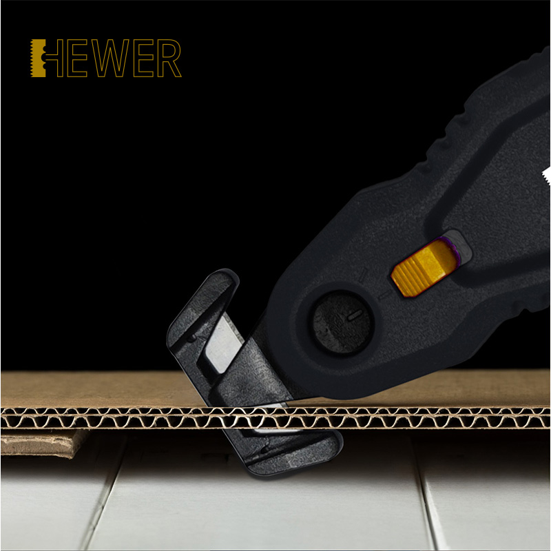 HEWER MultiSAFE HK-1900隱藏式刀片安全刀具以安全性和功能性為設計核心,最大程度地提升了多功能性、舒適性和安全性。其可調節的切割角度和可更換的刀片頭能從不同角度輕松打開包裝,無需擔心損壞您或包裹內的物品。它可用于切割所有標準材料,從薄膜到塑料捆扎帶,從紙張到雙層紙板。此外,它還配備鈍角金屬膠帶切割器,可輕松切割膠帶。