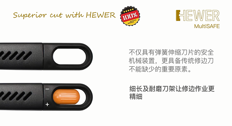 HEWER家的產(chǎn)品,無論是剪刀,修邊刀還是美工刀,都秉承著將危險降低的理念,把安全感提升,讓受傷的概率降低。