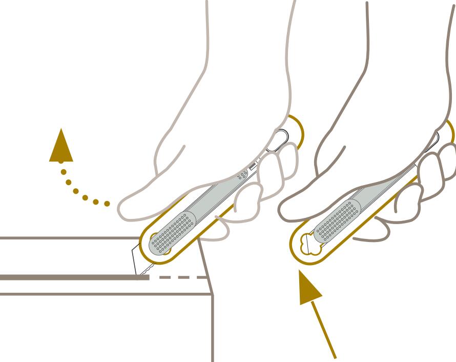通常,當員工試圖通過用力割斷一條直線來快速打開盒子時,他們會傷害自己。為了防止此類事故的發生,員工應做好切割線的心理記錄。應保持他們的身體和手遠離切割線。防止這種情況的另一種方法是使用自動可伸縮刀片安全刀。這種安全刀對用戶是非常重要的,因為一旦員工放棄該切割運動,它會收回刀片,從而防止對員工造成任何重大傷害。